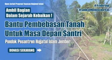 Berkontribusilah dalam pembebasan tanah untuk wakaf pondok putri melalui amal jariyah Anda. Donasi ini akan mendukung mengembangkan pembangunan sarana & prasarana yang dibutuhkan untuk santri putri.