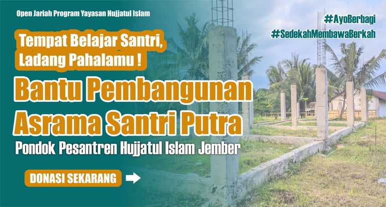 Dukung pembangunan asrama santri putra dengan donasi jariyahmu. Setiap sumbangan membantu menciptakan fasilitas yang mendukung proses belajar santri, dan pahalanya akan terus mengalir.
